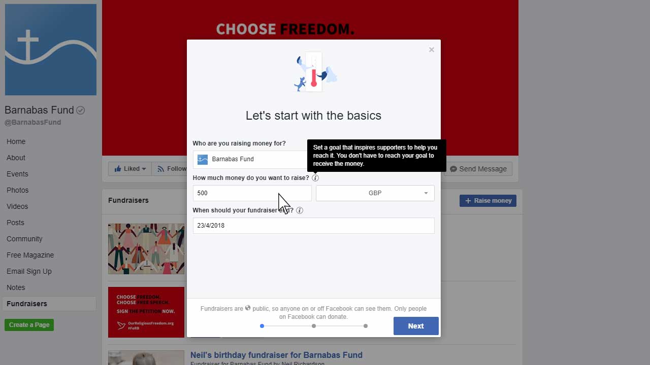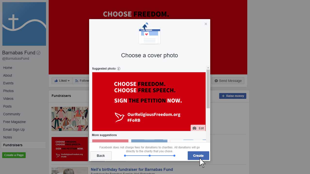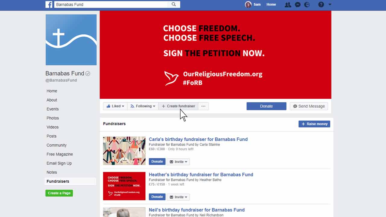 Go to the Barnabas Fund Fundraisers Facebook Page: https://www.facebook.com/pg/BarnabasFund/fundraisers