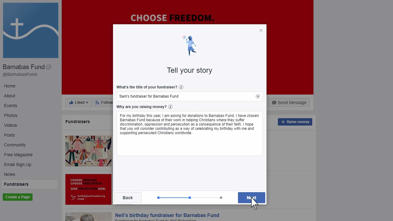 Fill in the title of your fundraiser and type a brief but personal description as to why you are raising money for Barnabas Fund.