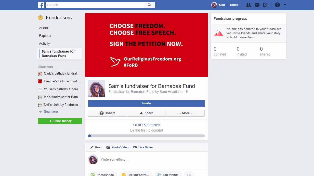 Finally share the fundraiser on your timeline and tell your friends and family why you have donated to Barnabas Fund.